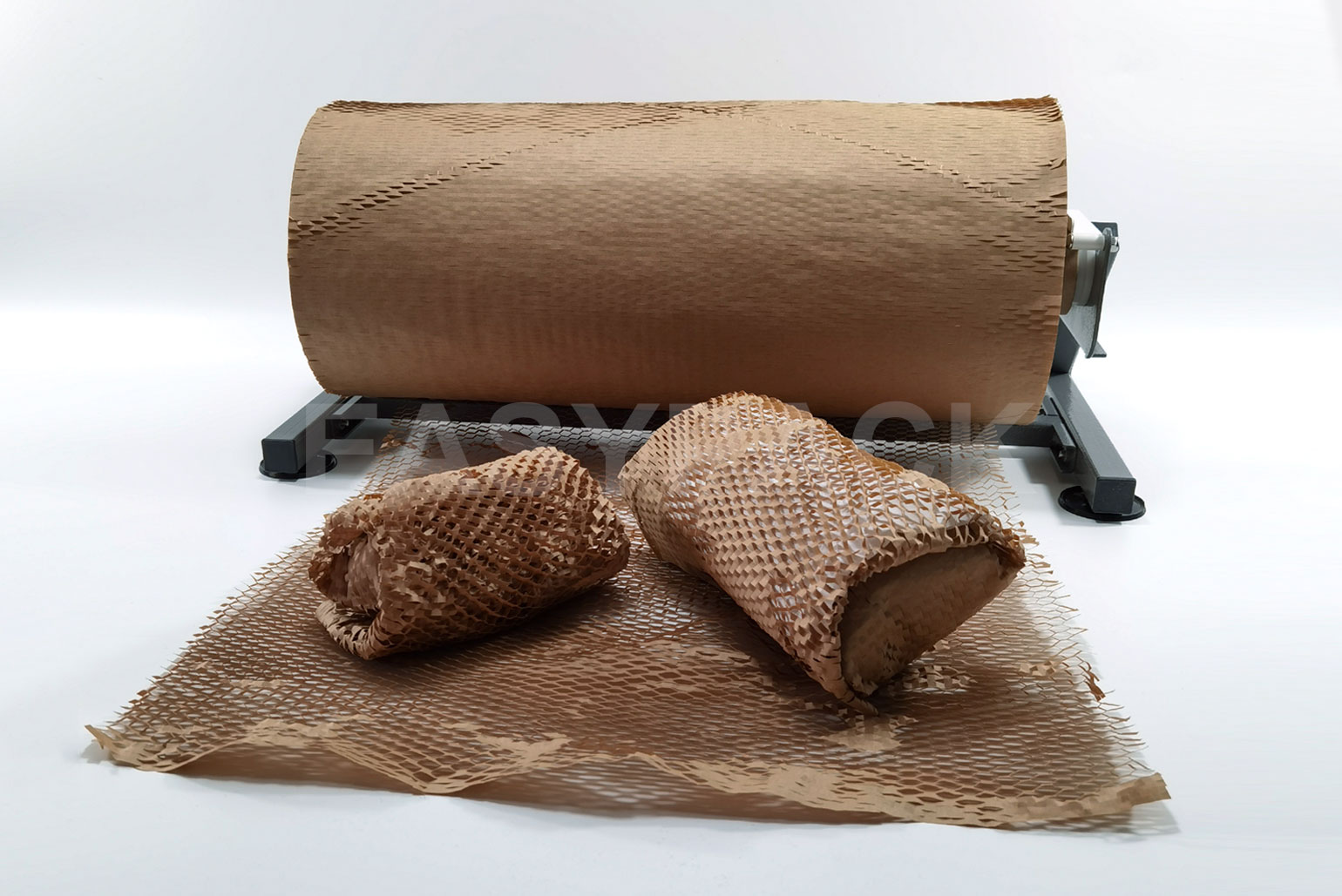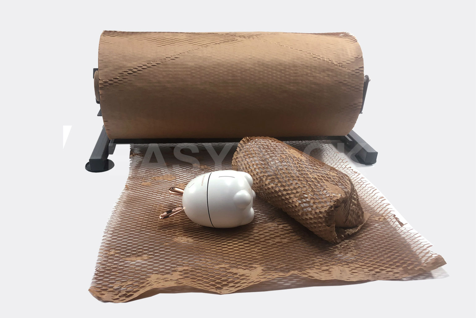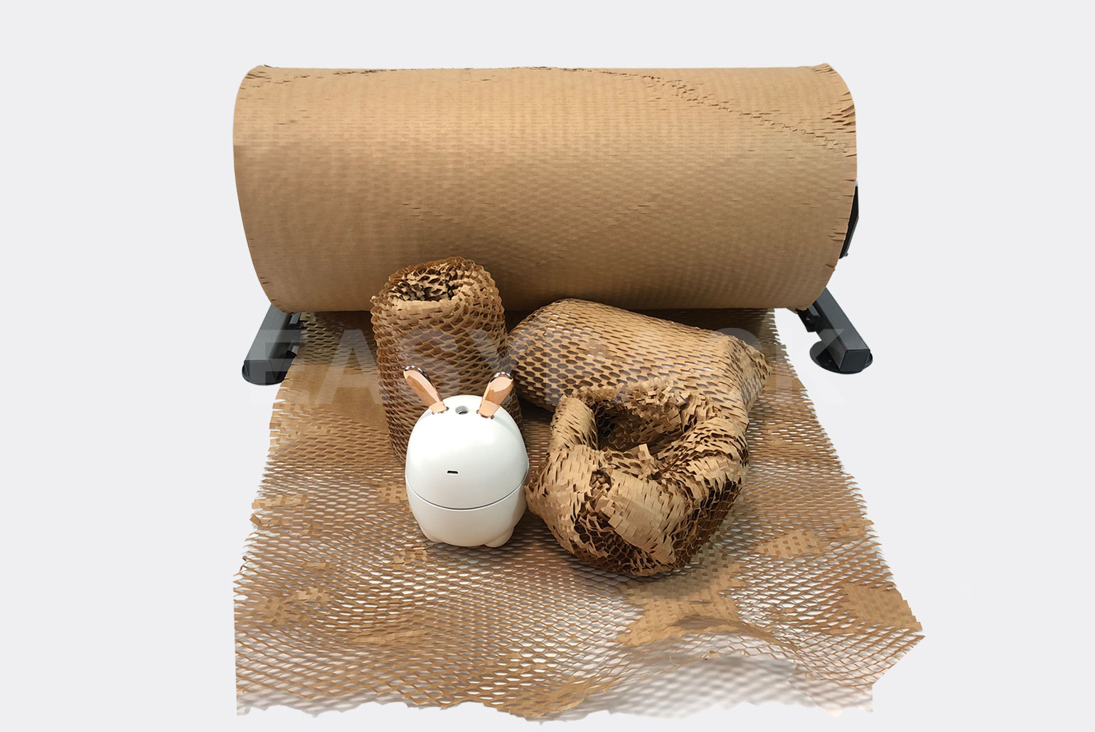 • 3D六角蜂窩狀的牛皮紙卷,經(jīng)過(guò)拉伸后呈現(xiàn)立體蜂窩結(jié)構(gòu)的紙襯墊,在包裹物品后能產(chǎn)生良好的緩沖防震效果。